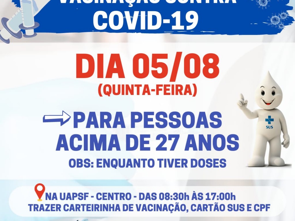 Desde a manhã desta Quinta (05), está ocorrendo a imunização contra o coronavírus em pessoas do público geral acima de 27 anos de idade, em Santa Maria do Oeste.